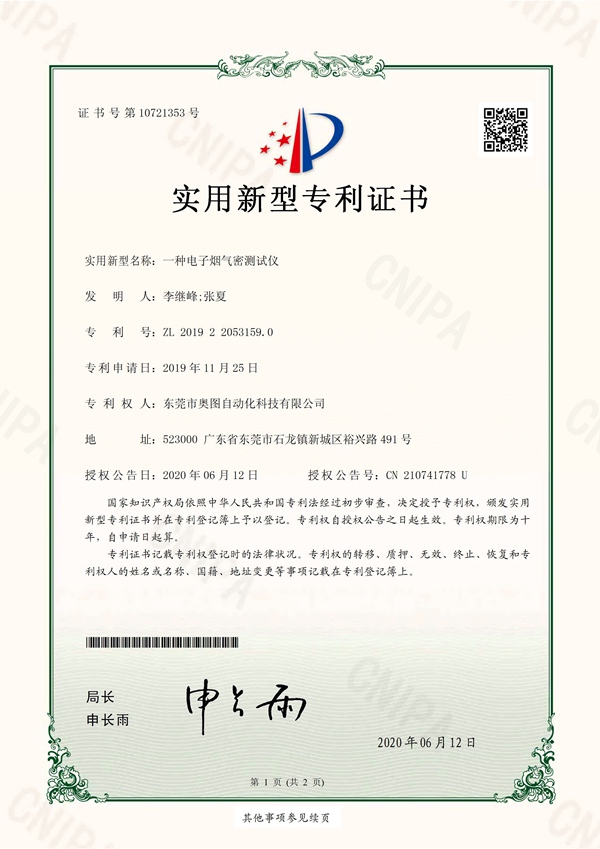電子煙氣密測試儀專利